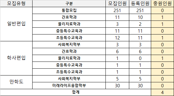 * 해당학과 : 간호학과, 물리치료학과, 초등특수교육과, 중등특수교육과