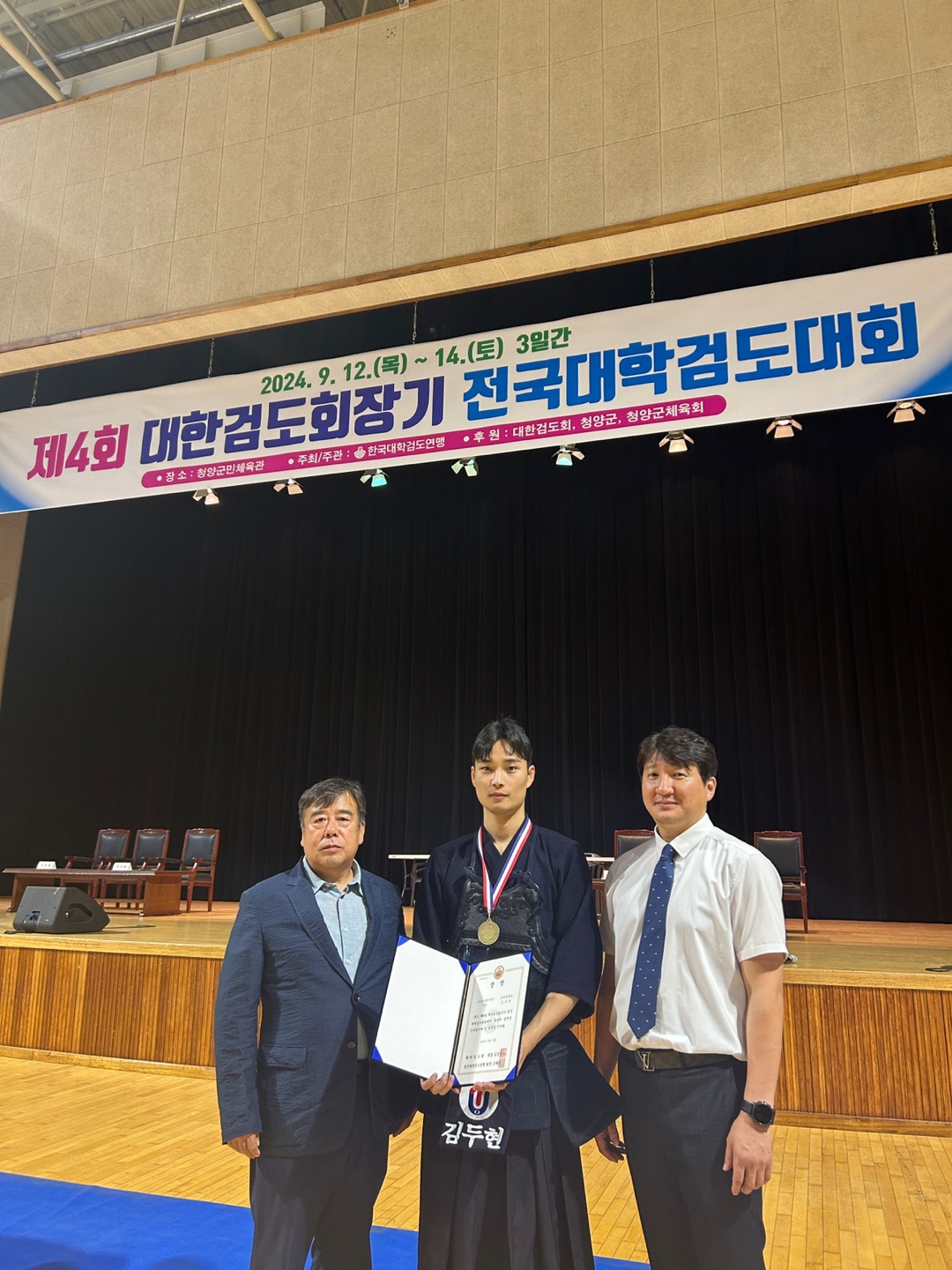 충북 유원대학교 스포츠학부 공수빈(4학년) 선수가 지난 23~25일 열린 ‘23회 회장기 전국대학검도선수권대회’에서 여자부 개인전 우승을 차지했다. 여자1부 개인전에 출전한 유원대 공수빈 선수는 예선전에서 경운대학교 김유정 선수를 2대0으로 이기고 16강에 올라 용인대 정현지 선수를 2대0으로 꺾었다. 8강에서는 경북대학교 김서윤 선수를 1대0으로 이겼고 준결승전에서는 국가대표인 경북대학교 신동아 선수를 1대0으로 승리해 결승전에 진출했다. 결승전에서는 국가대표인 용인대학교 김은빈 선수와의 긴 연장전 끝에 멋진 머리 한판으로 우승을 거머쥐었다. 또 남자1부 통합 단체전에서 유원대팀(남현준, 김규민, 박성준, 이범준, 김두현, 이경태, 김희찬, 김영운, 김성일)이 16강에서 제주대를 만나 6대1로 대승을 거뒀고 8강에서 경운대를 4대1로 이기며 4강에 진출했다. 4강전에서는 용인대학교와 맞붙어 2대2 동점 상황에서 1포인트 차이로 결승에 올랐다. 결승에서는 대전대를 만나 5대1로 아쉽게 패배하며 준우승에 머물렀다. 이외에도 '22회 회장기 전국대학 OB 검도대항전'에서 남자 유원대학교 OB팀(오상현, 강찬영, 남기원, 오정환)이 계명대 OB팀을 2대1로 승리하고 결승에 진출했으나 대구대 OB팀과의 결승에서 2대2 동점 후 1포인트 차이로 아쉽게 준우승을 차지했다. 유원대 검도부는 각종 국내 대회에서 우수한 성적을 거두며 세계검도선수권대회 등 국제 대회에서도 두각을 나타내고 있다. 이는 스포츠학부 김민환 교수의 지도하에 이룩한 성과로 유원대학교는 매년 명실상부한 검도 명문대학으로서의 면모를 보여주고 있다.
