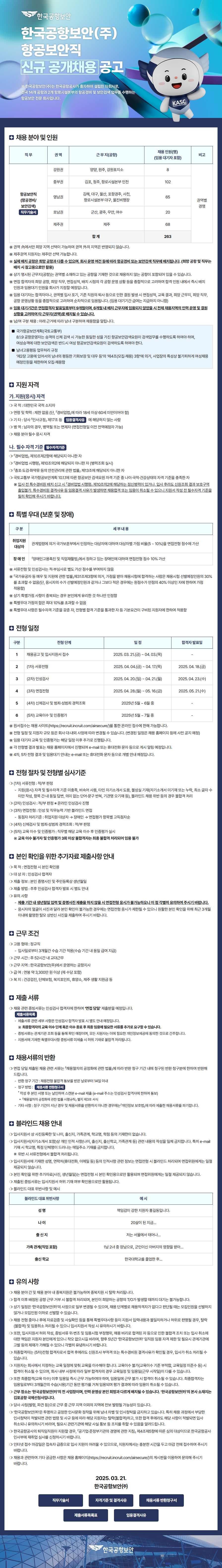 [한국공항보안(주) 항공보안직 신규 공개 채용] 공고 진행중이며, 4/3(목) 마감 해당 직무에 관심이 있는